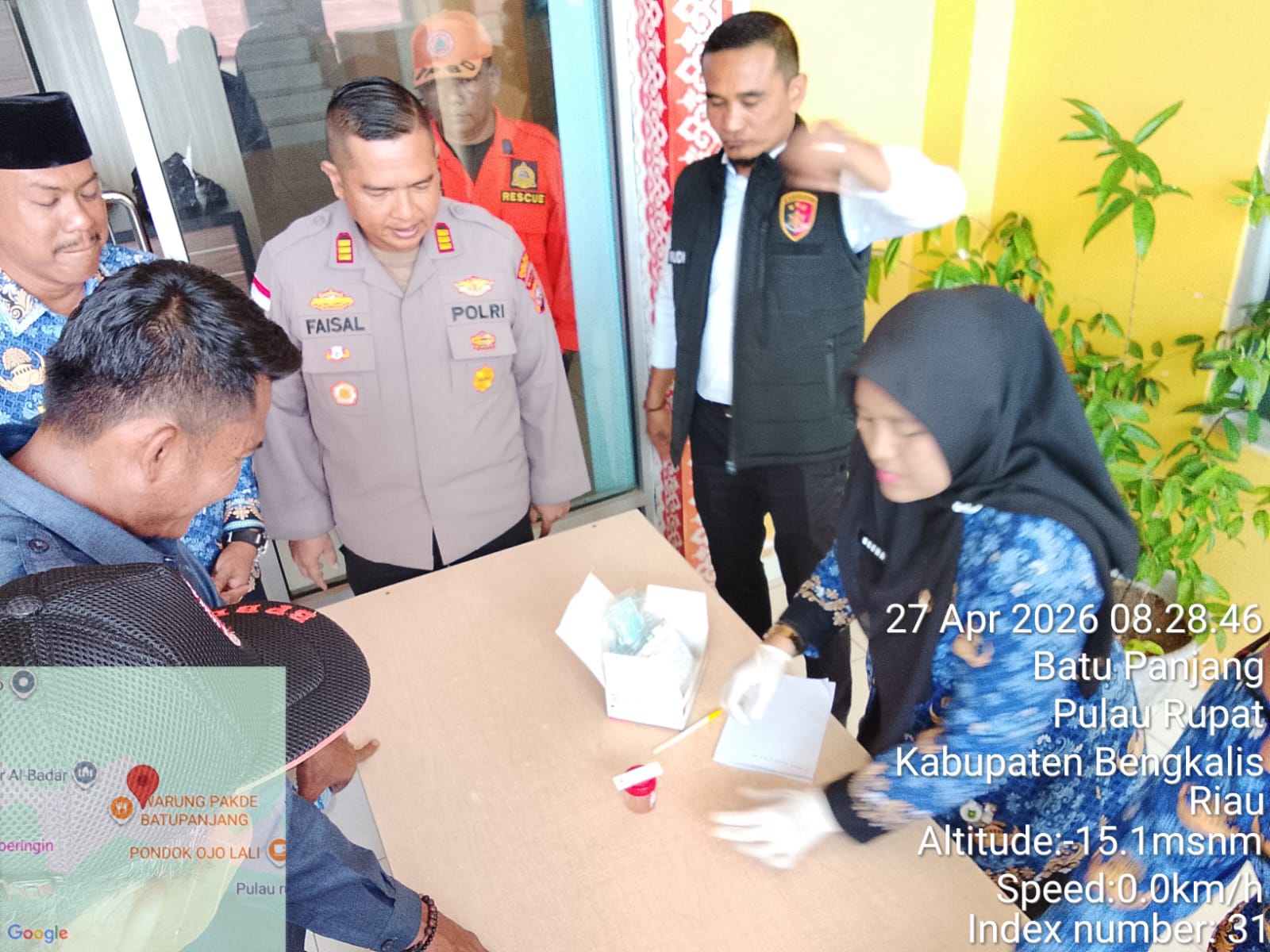 RUPAT - SuaraXPost - Upaya pemberantasan penyalahgunaan dan peredaran gelap narkoba terus digencarkan di wilayah Kecamatan Rupat, Kabupaten Bengkalis. Hal ini terlihat dari pelaksanaan kegiatan tes urine secara mendadak (sidak) yang dilakukan oleh Polsek Rupat bersama Pemerintah Kecamatan Rupat, Senin (27/04/2026).
