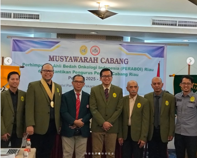 Pengurus Peraboi (Perhimpunan Ahli Bedah Onkologi Indonesia) Cabang Riau periode 2025-2028 resmi dilantik pada 5 April 2026 di Hotel Pangeran Pekanbaru. dr. Muhammad, Sp.B, Subsp. Onk(K) terpilih sebagai Ketua Peraboi Cabang Riau yang baru, dilantik oleh Ketua IDI Wilayah Riau
